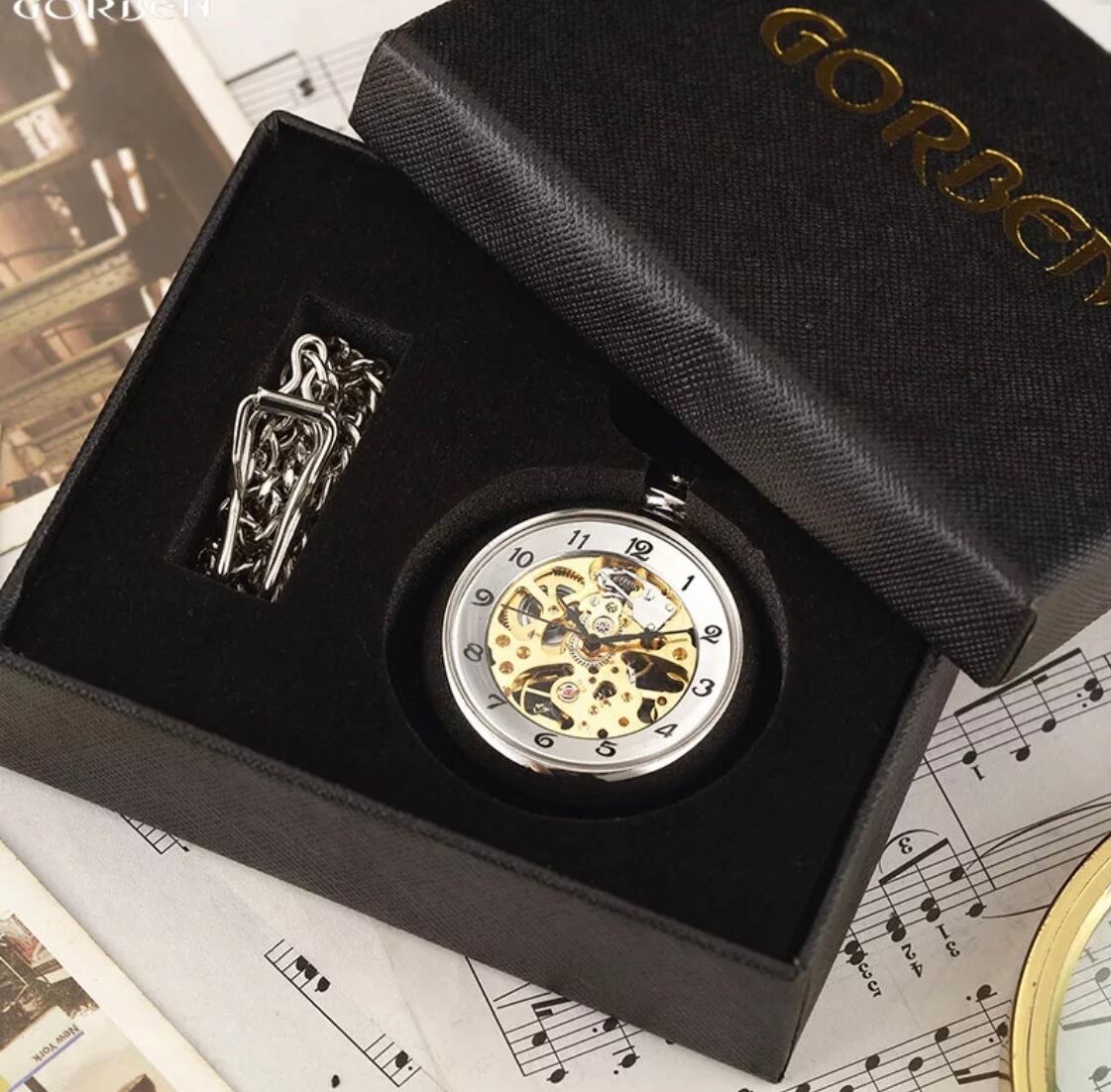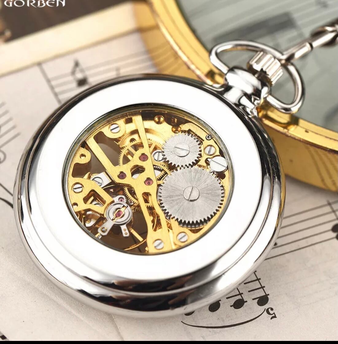 クラシックなスケルトンデザインが目を引くこの懐中時計は、精 密な機械式ムーブメントを採用し、時を刻む美しさをダイレクトに感じさせます。透明なケース越しに見えるメカニズムは、まるで芸術品のような存在感を放ち、どんなシーンでも注目を集めます。