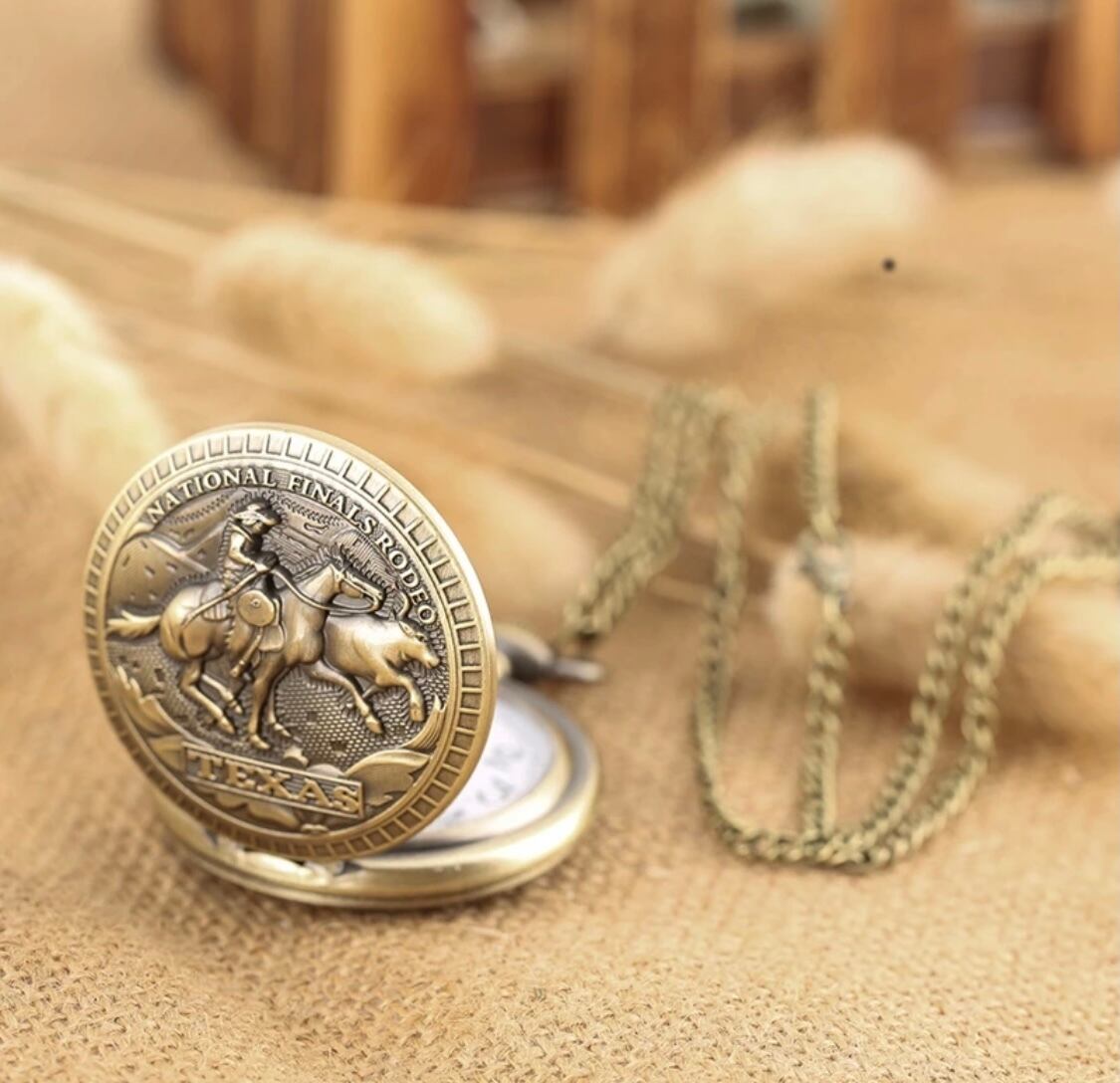 懐中時計42 テキサスロデオデザインブロンズクォーツネックレスチェーンになります。