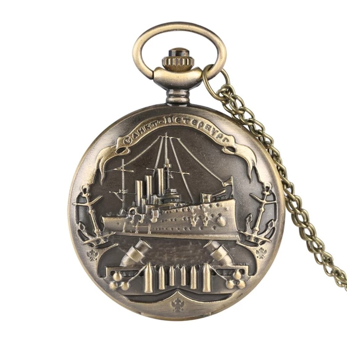 懐中時計43 軍艦デザイン ブロンズクォーツネックレスチェーンになります。